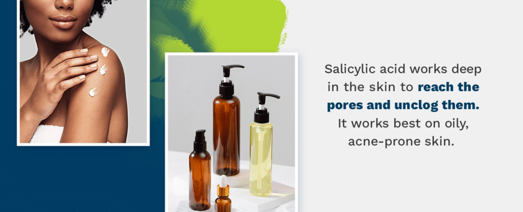 • Acne and pimples: If your skin is prone to acne, products containing salicylic acid or benzoyl peroxide are better.